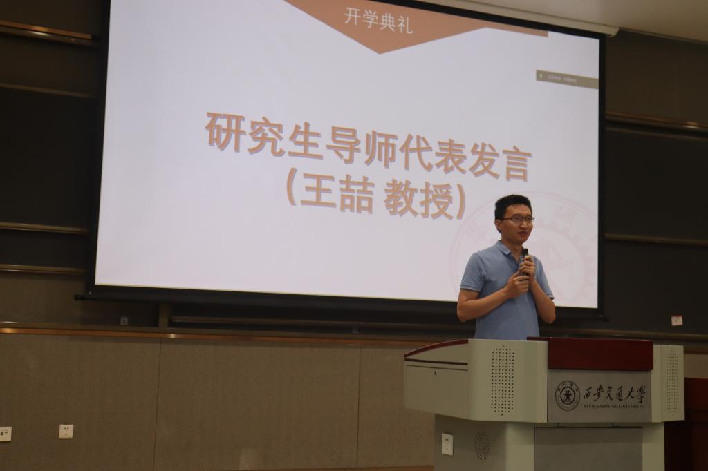 研究生导师代表王喆通过轻松的聊天方式,向大家分享了自己在求学阶段的艰苦历程。王老师从自身经历出发鼓励同学们保持乐观心态,不要害怕压力和挫折,将挑战视作乐趣。希望同学们能够做到‘心中有爱,眼中有光’,懂得关爱他人,懂得感恩,能够与人为善,对有生活的热爱和对未来的憧憬,对挑战充满勇气。