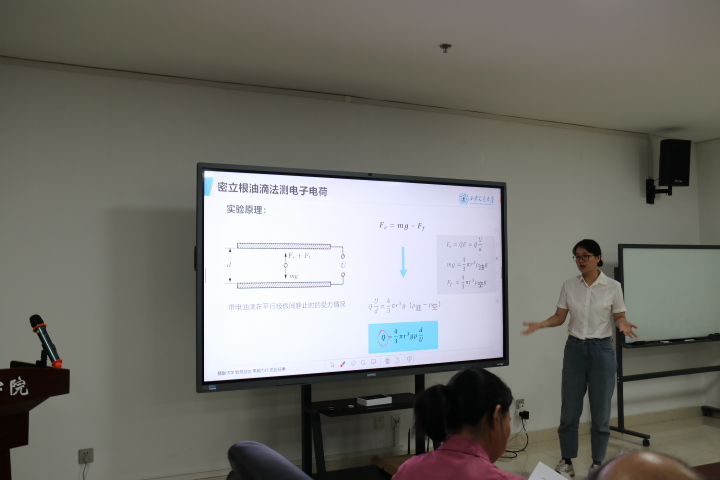 本次比赛邀请了我校基础物理课程方面专家为评审专家,并且吸引了30余位青年教师观摩学习比赛。在随后的比赛中,四位参赛教师分光计、密里根油滴、转动惯量为主题,从课程思政、教学设计、实验的原理、实验操作等多方面展示了物理实验课程的教学过程和教学思考,评审专家从教学设计、教学语态、多媒体展示、课程思政等多方面对青年教师授课进行了全方位的点评和指导。