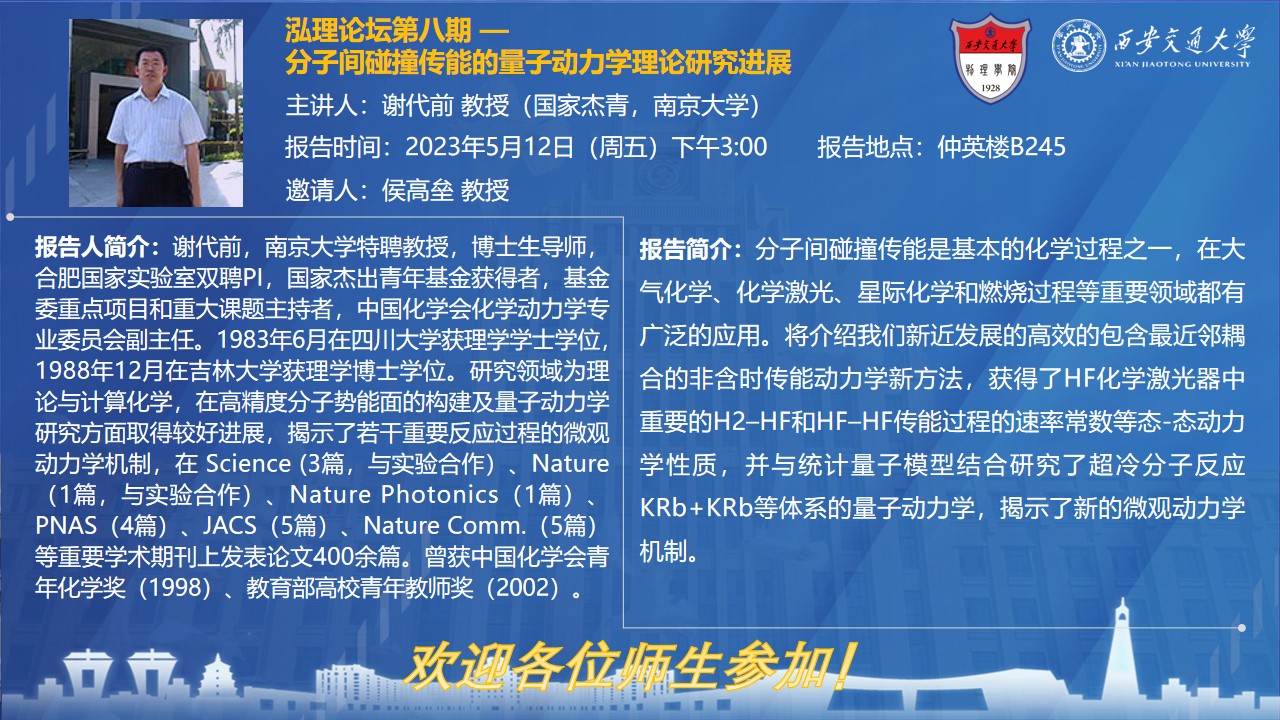 【泓理论坛】第八期—分子间碰撞传能的量子动力学理论研究进展