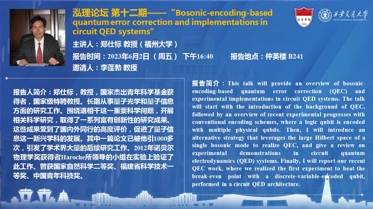 【泓理论坛】第十二期——Bosonic-encoding-based quantum error correction and implementations in circuit QED systems