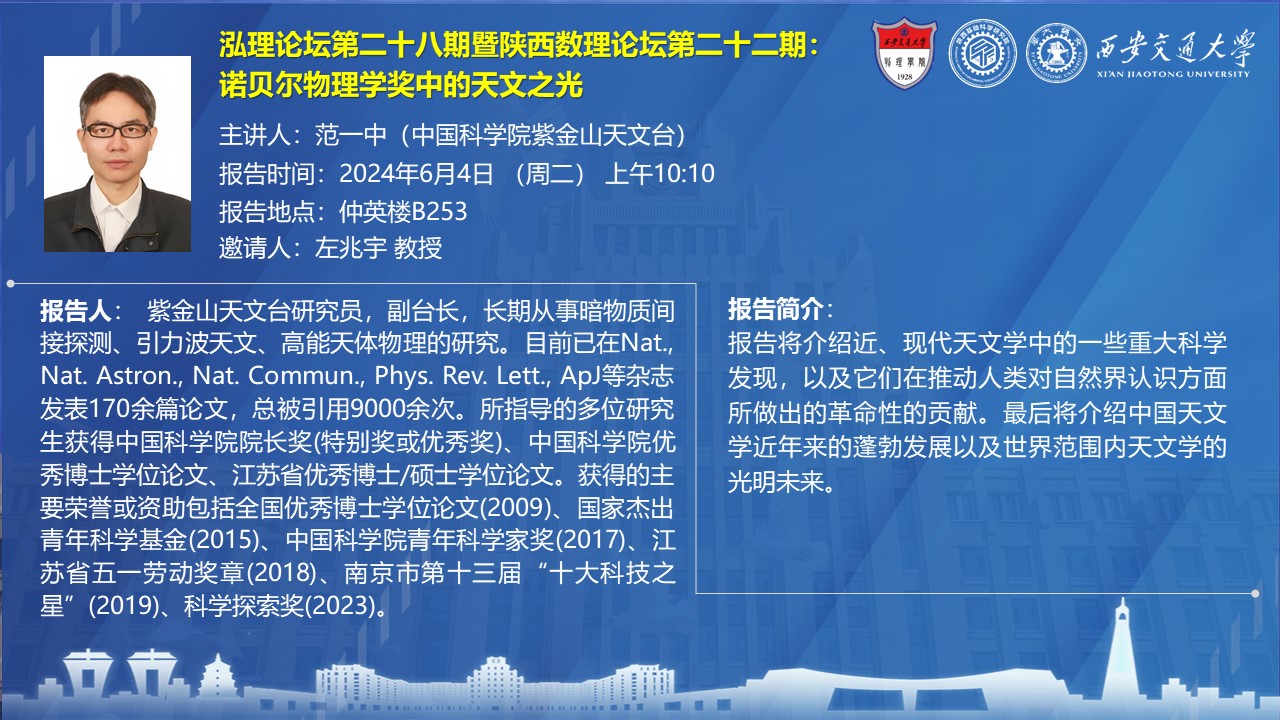 【泓理论坛第二十八期暨陕西数理论坛第二十二期】——诺贝尔物理学奖中的天文之光