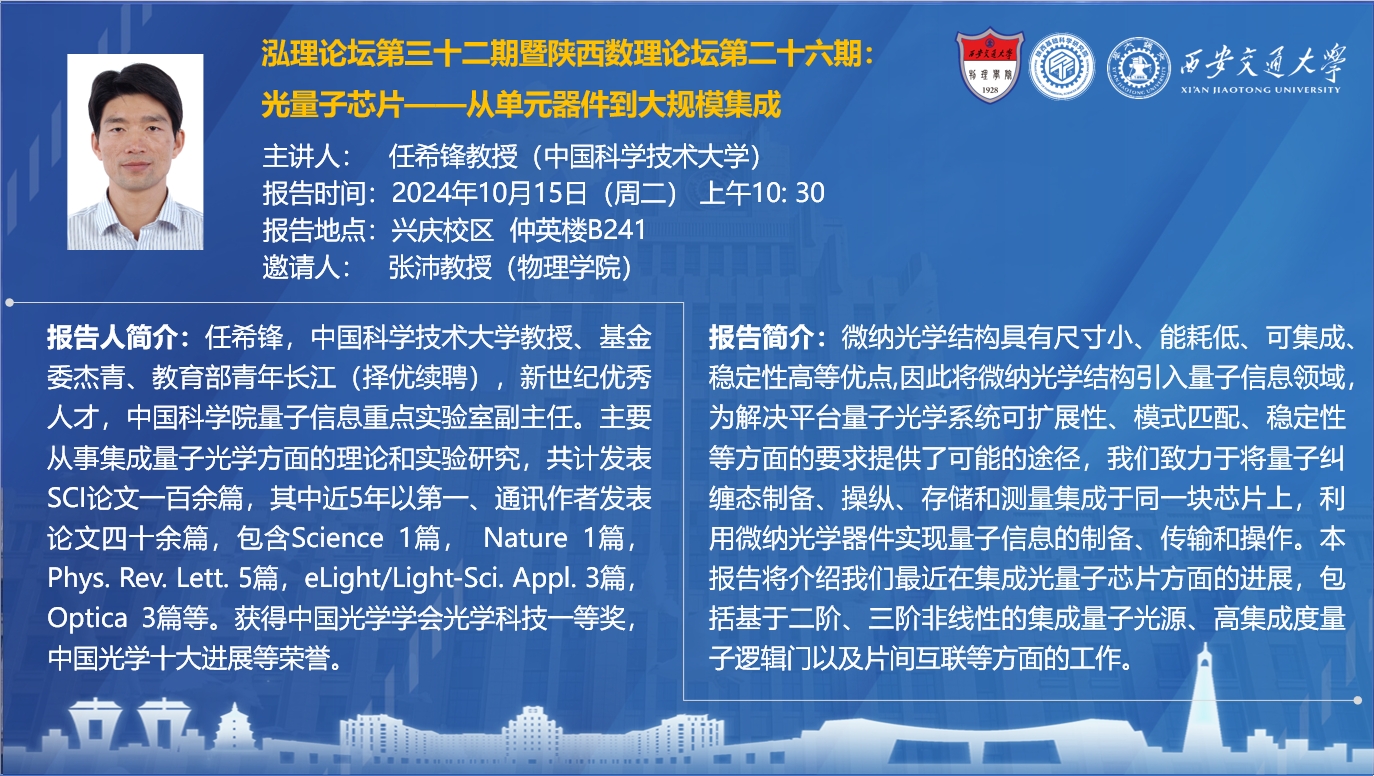 【泓理论坛第三十二期暨陕西数理论坛第二十六期】 光量子芯片——从单元器件到大规模集成
