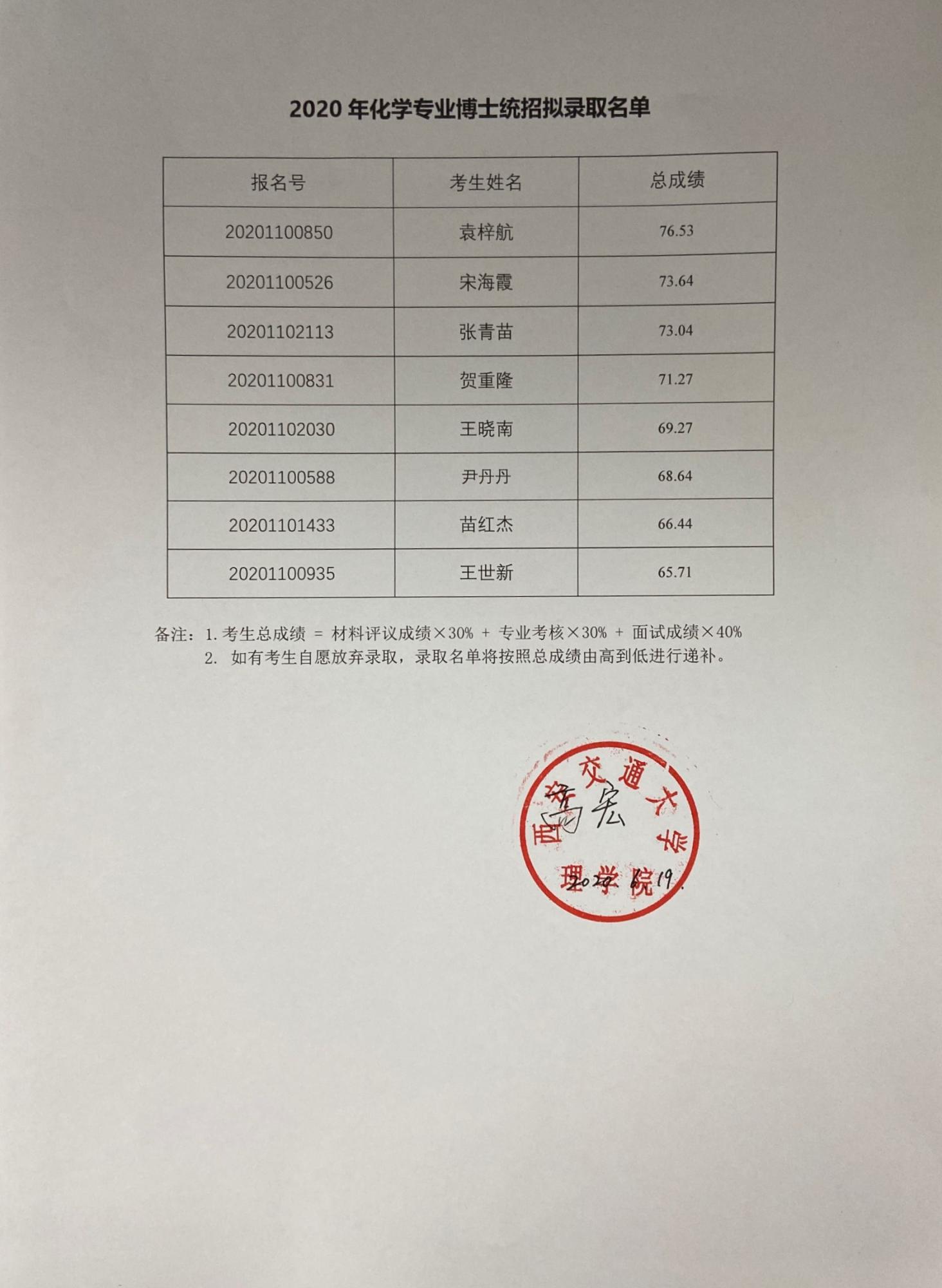 根据学校招收攻读博士学位研究生的有关文件精神,现将2020年“申请-考核”制攻读博士学位研究生拟录取结果如下: