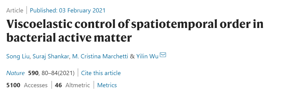 在非平衡态物质体系的研究中,有关活性物质自组织的研究快速发展。不同于平衡态物质体系,活性物质有局部的能量输入,包括从单细胞到动物的所有生命体,由分子马达驱动的生物分子,以及人工合成的自驱动物质。近日,由香港中文大学、加州大学和哈佛大学的物理学者组成的团队在这个领域取得了突破:材料的粘弹性可以控制活性流体在空间和时间上的自组织。研究成果以“Viscoelastic control of spatiotemporal order in bacterial active matter”为题,于北京时间2021年2月4日在线发表在科学期刊《自然》上,香港中文大学吴艺林教授为论文通讯作者,伊莉影片