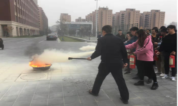 11月20日下午,在兴庆校区仲英楼西侧,给兴庆校区的博士新生进行消防灭火实战演练。