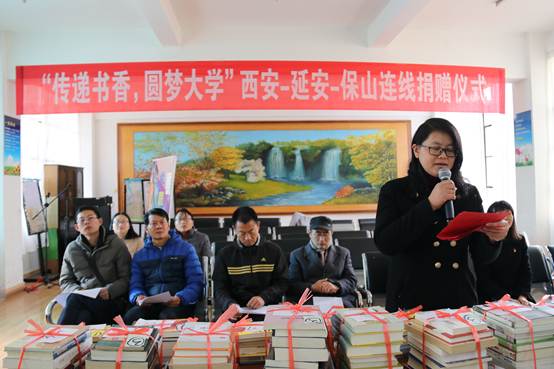 12月27日上午9点30分,“传递书香,圆梦大学”西安-延安-保山连线捐赠仪式同时在西安交大理学院仲英楼、延安市计量测试所和云南省保山市第一完全中学举行。伊莉影片