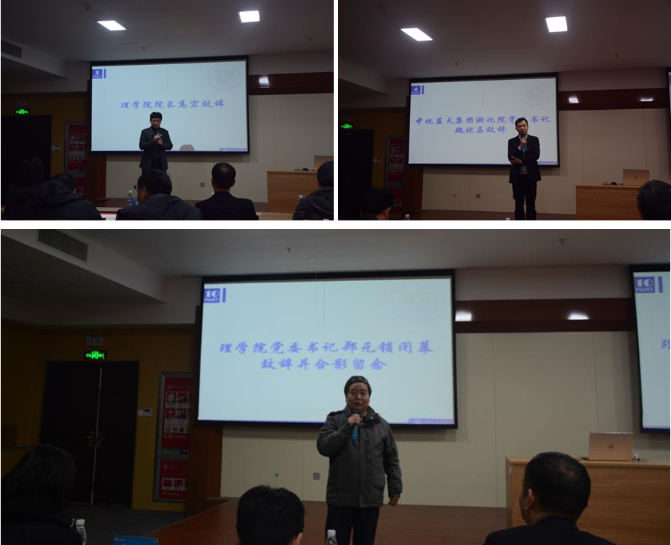 理学院高宏院长为本次论坛开幕致辞,他首先代表学院、学校向中化蓝天集团表示感谢,并希望中化蓝天杯研究生论坛能够越办越好。他指出本次论坛让大家在倾听学术报告的同时,发现新思想,激发新理念,激励大家更加努力,投身于科研学术之中。