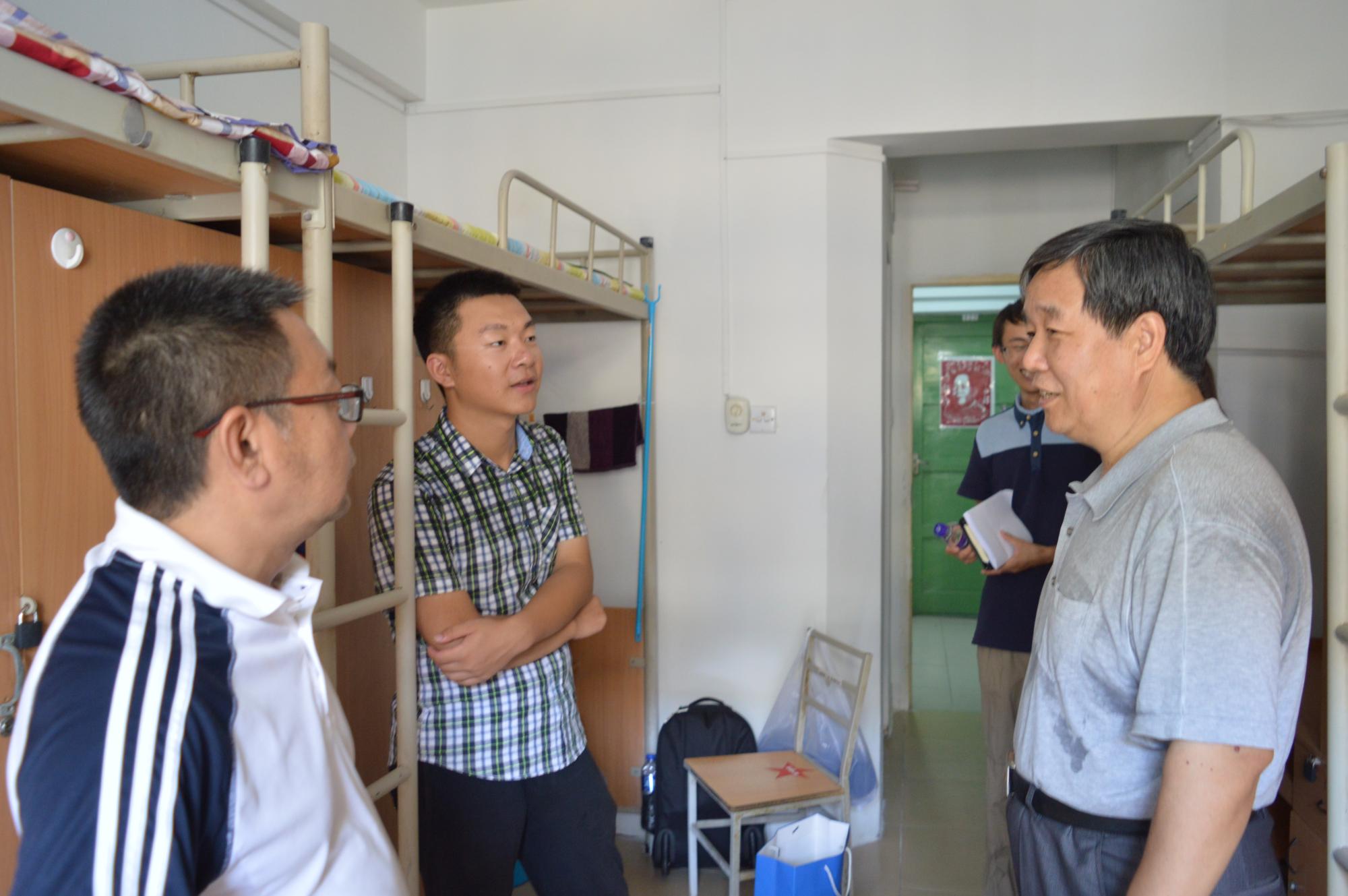 8月20日下午3点,理学院党委书记郑元琐、副院长高宏、应用物理系主任李广良、化学学科主任张志成、材料化学系主任解云川以及物理62班班主任刘瑞丰、化学62班班主任梁军艳、研究生辅导员魏小平一行来到彭康书院,在彭康书院院务副主任郭虎和辅导员刘丽的陪同下,走访了理学院2016级50余间新生宿舍。在走访中,郑元琐书记向各位同学和家长表示热烈的欢迎,询问大家的基本情况,及时解答大家关于学院专业的各种问题。其他老师与学生和家长进行了简单交流,为大家带去了学院的关心和问候,让学生和家长感受到了学院的关怀和温暖。