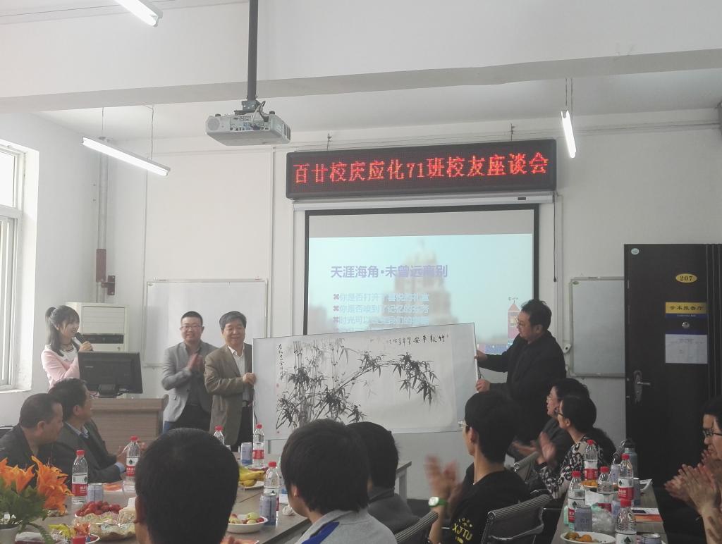 4月9日,应化71班校友返校座谈会在化学楼举行,理学院郑元锁书记、唐玉海副院长、化学学科张志成主任及其他师生代表与校友们亲切座谈。