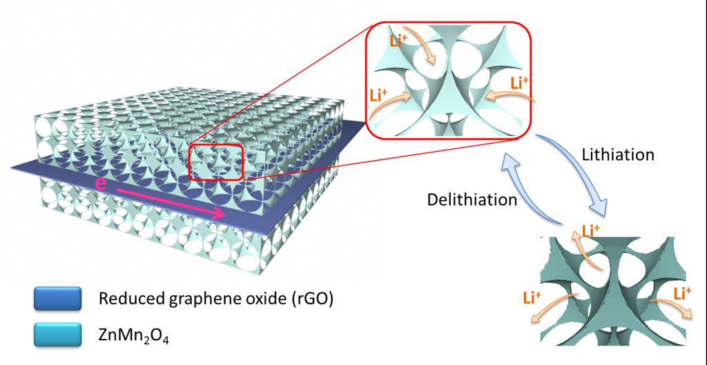 探索高性能电极材料是提升锂离子电池性能的关键。混合过渡金属氧化物以其较高的理论比容量、丰富的资源和安全性成为目前锂离子电池负极材料研究的热点,但是这类材料的导电性较差,循环性能不太理想。本工作通过优化柠檬酸钠的用量,在石墨烯表面成功构建了泡沫状的ZnMn2O4纳米复合结构。这种独特的三明治泡沫结构为锂离子的快速嵌入和脱嵌提供了有利的环境,可以大幅度提升电极材料的放电容量和循环寿命。该项研究为今后获取高性能锂离子电池负极材料提供了重要参考。