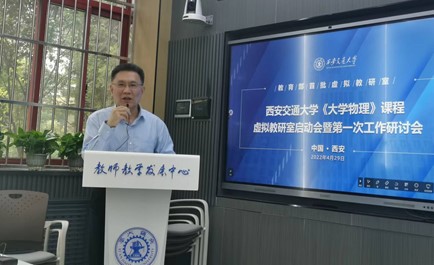 4月29日,西安交大牵头的教育部大学物理课程虚拟教研室启动会暨第一次工作研讨会在东二楼140智能教室召开。来自30余所高校的70多位骨干教师和高等教育出版社、全国高校教师网络培训中心、超星集团的相关负责人参加会议。常务副校长郑庆华和教育部大学物理课程教学指导委员会主任、清华大学教授王青致辞。国家级教学名师、教发中心主任、大物虚拟教研室常务副主任徐忠锋主持启动会。