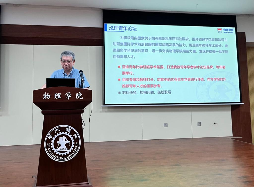 院长高宏为开幕式致辞,他以《加强物理一流学科建设的思考》为题,从教学科研基地、人才结构、学科排名等多个方面详细解读了物理学科发展现状,分析了学科发展的差距与短板,指出了核心指标、影响力、竞争力的关键在于“人”,学院将持续完善学科人才战略布局,保障人才成长条件,着力提升人才竞争优势和学术影响力;坚持育人为本,切实提高人才培养质量;对接国家重大需求和国际学术前沿,布局谋划学院战略性、前瞻性的科研团队,培育打造学院战略科技力量。