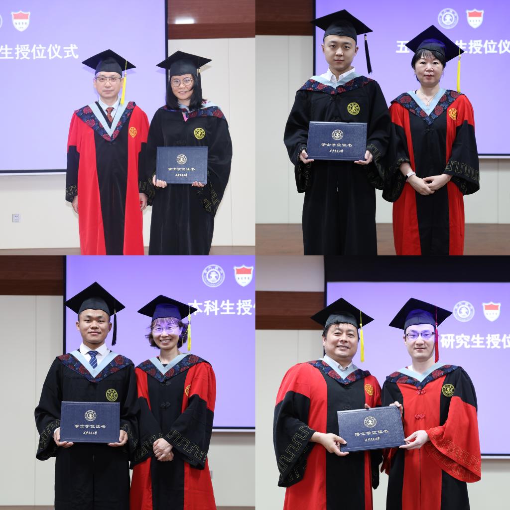 紧接着进入毕业典礼最激动人心的时刻——学位授予仪式,毕业生们分组有序上台,高宏院长、徐慧主任给励志书院本科生拨穗授位,张莹书记、李蓬勃副院长给钱学森书院本科生拨穗授位,李蓬勃、张沛、杨生春、穆廷魁、孔春才、王喆、高韶燕、张杨、Adil Murtaza、王斌、王信等多位研究生导师给研究生拨穗授位,赵永涛副院长、李蓬勃副院长给其他研究生拨穗授位。