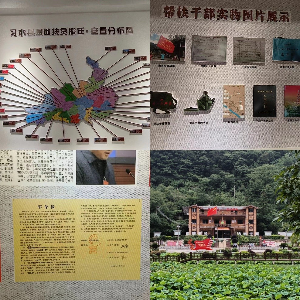 “易搬”社区观成效,桑木土河荷花香。为进一步了解当地情况,宣传片小分队还前往习水县易地扶贫搬迁社区和习水桑木镇土河村开展走访拍摄。在“易搬”社区内,在当地工作人员的陪伴讲解下,实践队员们参观了易地扶贫搬迁的“小博物馆”,见到了“易搬”社区的分布图,帮扶干部的实物展示,以及一张黄色的沉甸甸的“军令状”,在实践之中感受帮扶干部们无私奉献的精神;在土河荷塘苗乡景区内,实践队员切身感受着千亩荷塘阵阵香,体悟着乡镇振兴为当地居民生活带来的巨大改变。
