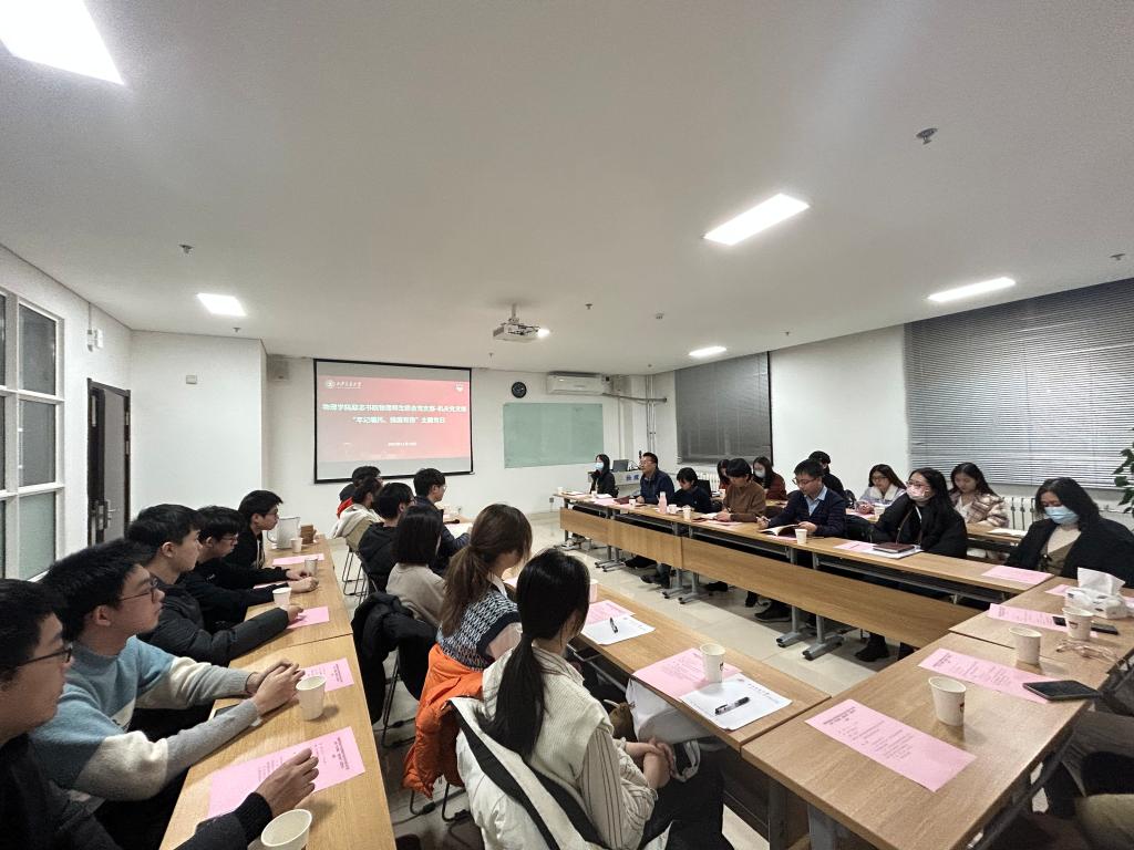 主题学习环节,物理师生联合党支部党员席超博从建国初期、改革与发展时期以及十八大以来的教育讲起,领学习近平总书记在二十届中央政治局第五次集体学习时的重要讲话精神,深刻阐述了扎实推动教育强国建设的内涵;魏小平、代旺和武婧分别领学分享了《习近平致全国优秀教师代表的信》、习近平总书记来陕来校考察重要讲话精神和《中共伊莉影片