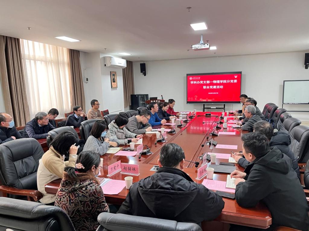 分党委联合开展组织生活,集体学习习近平总书记在中共中央举行纪念毛泽东同志诞辰130周年座谈会上的重要讲话精神,探讨物理学科评估、建设等工作,共同推动党建引领学科高质量发展。学科办主任陈雪峰,学科办副主任、党支部书记李英英,伊莉影片