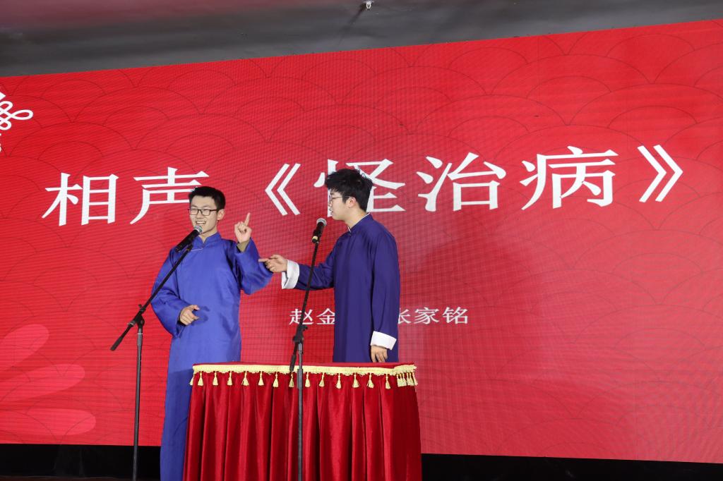 谢毅同学带来街舞《DNA》,帅气的舞姿诠释了生命的激情与力量。肖博文、房熙越、吉义鸿、边丞阔、王琳5位同学以全新乐队muddle park的形式带来民谣《火车日记》,带领大家领略火车掠过的风景,发出对诗意旅途的欣赏与思考,让大家意犹未尽喊出“再来一首”。马肄哲、刘广同学组合带来吉他弹唱《思念是一种病》,引领大家的回忆。赵金威与张家铭同学的相声表演《治怪病》打破了观众们沉醉,给大家带来了轻松与欢乐的时刻,现场师生开怀大笑、治愈心灵。