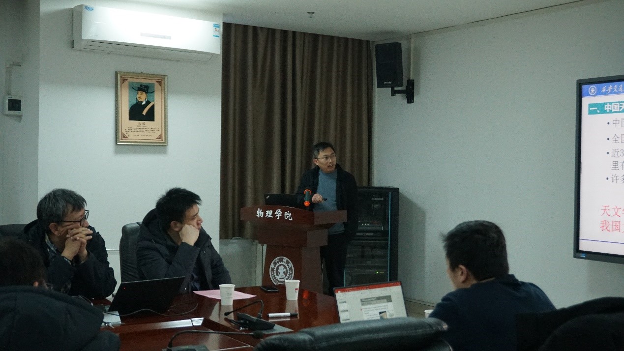 张莹首先代表学院向刘海文教授的莅临表示热烈欢迎,并从国家战略发展、学校十四五规划布局和学院学科发展三个方面介绍了天文学科发展的重要意义。随后左兆宇教授代表学院天文研究团队,介绍了国内高校及地方天文发展现状,并分析了学科发展态势,指出伊莉影片