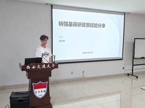 励志书院物理师生联合党支部刘少杰同志分享了强基计划转段的相关内容和经验。他介绍了强基计划转段的相关流程,鼓励同学们及时联系导师并开展毕业设计,提早适应研究生阶段的学习并提升科研能力。