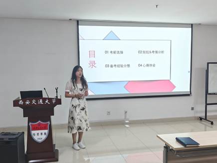 励志书院物理师生联合党支部徐雅馨同志作为刚刚考研成功的范例,从“考前选择”“院校、考情分析”“备考经验分享”“心得体会”四个方面向同学们分享了考研的相关知识和经验。她提醒同学们在考前要明确自己心仪的院校和导师,在备战考研过程中要沉住气、静下心,以打持久战的心态坚持到最后。