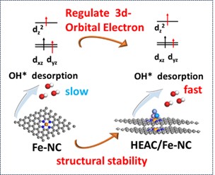 高熵原子团簇对Fe-N4的电子调控作用示意图