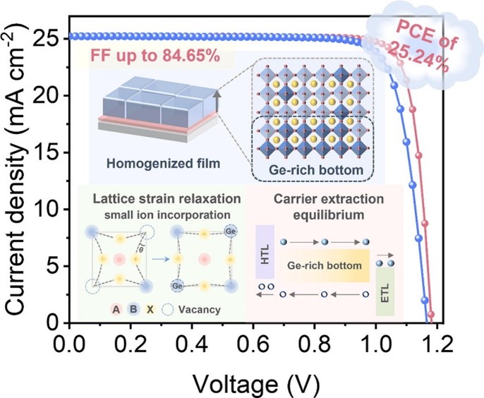 Ge掺杂提升钙钛矿太阳能电池性能示意图