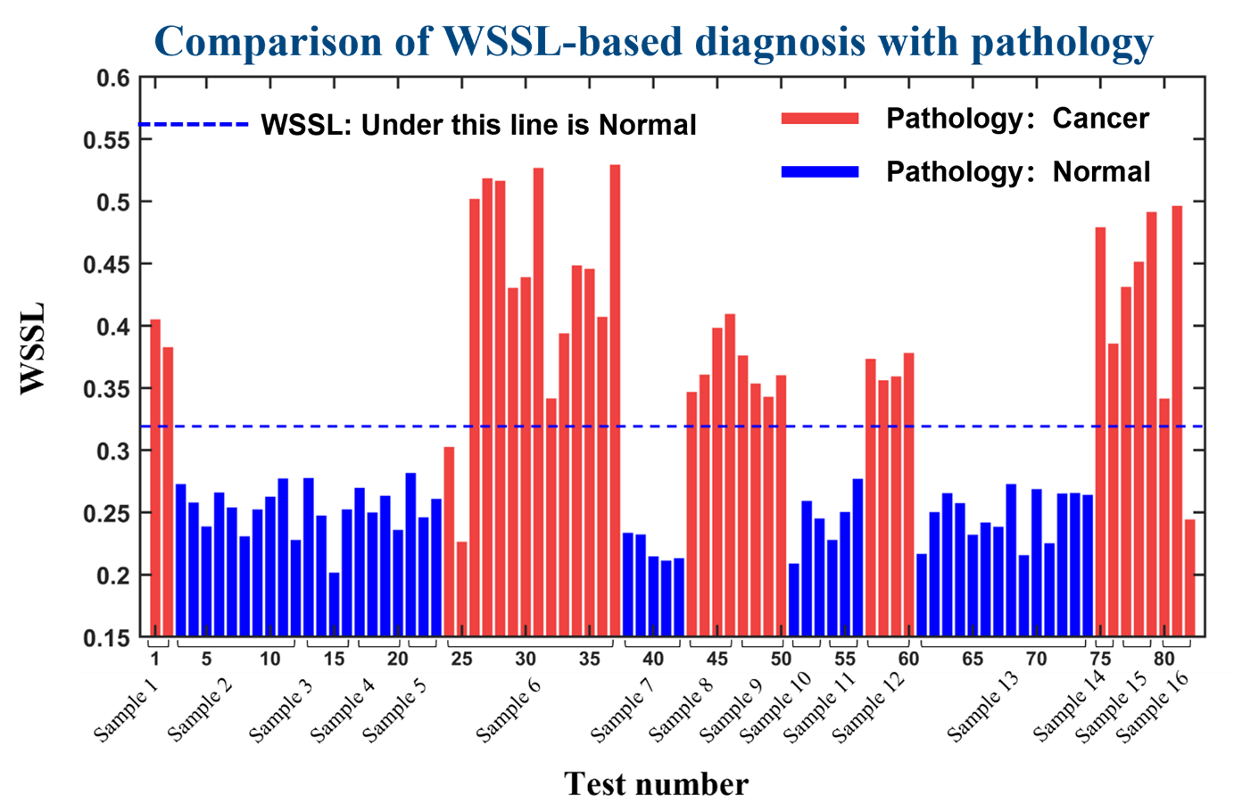 为了验证所提技术的性能,该研究对手术切除后的16个胃肠道组织进行了测试,并用WSSL参数对82个测试点进行了诊断。在正常组织(46个测试点)中,WSSL诊断结果与所有测试点的组织病理学结果一致,而在癌变组织(36测试点)中,WSSL诊断结果与33个部位的组织病理学结果一致,总准确率为96%,敏感性为91.7%(95%置信区间为76.4-97.8%),特异性为100%(95%置信区间为90.4-100%)。该系统的创新设计和WSSL诊断参数的引入,使得PLSS技术在临床应用中展现出潜在的实用性和高效性,为癌症的早期发现提供了新的手段和方法。