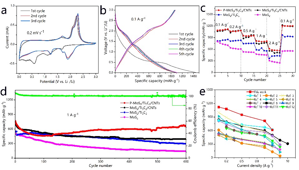 P-MoS2/Ti3C2/CNTs负极储锂性能