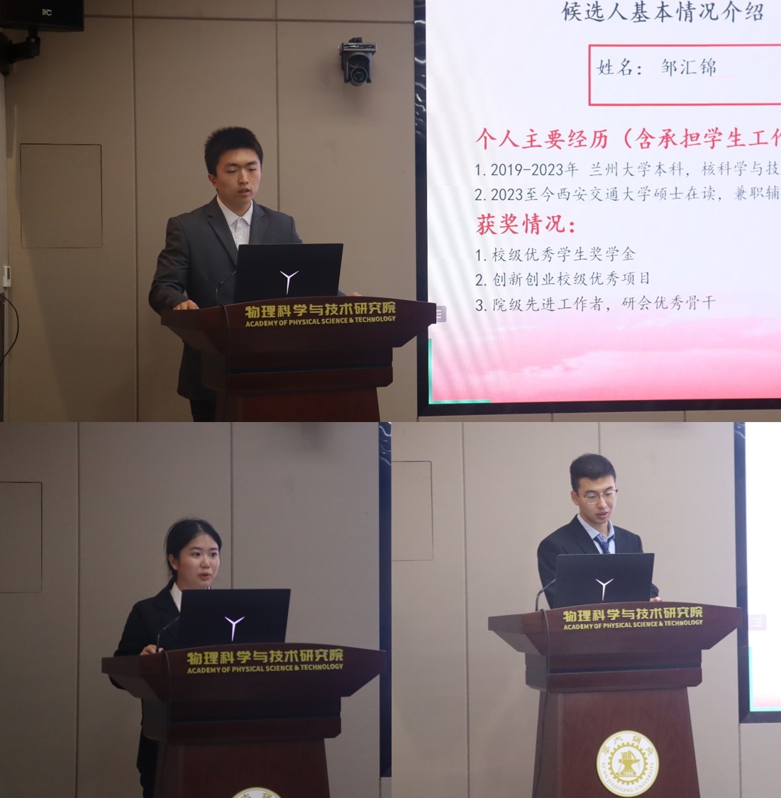 大会期间,研会主席团候选人邹汇锦、谭冰冰和柯小才分别汇报了任职期间的工作情况,并表达,会在今后的工作中依托研究生会的平台,以服务同学为宗旨,持积极主动的工作态度,努力为全体研究生同学营造良好的学习生活环境。邹汇锦总结了过去一年研究生会在学术、文体、志愿服务等方面的成绩,院研究生会将始终坚持党的领导,继续细化和完善职能分工,力求提高服务质量,全心全意、脚踏实地地为同学们服务。