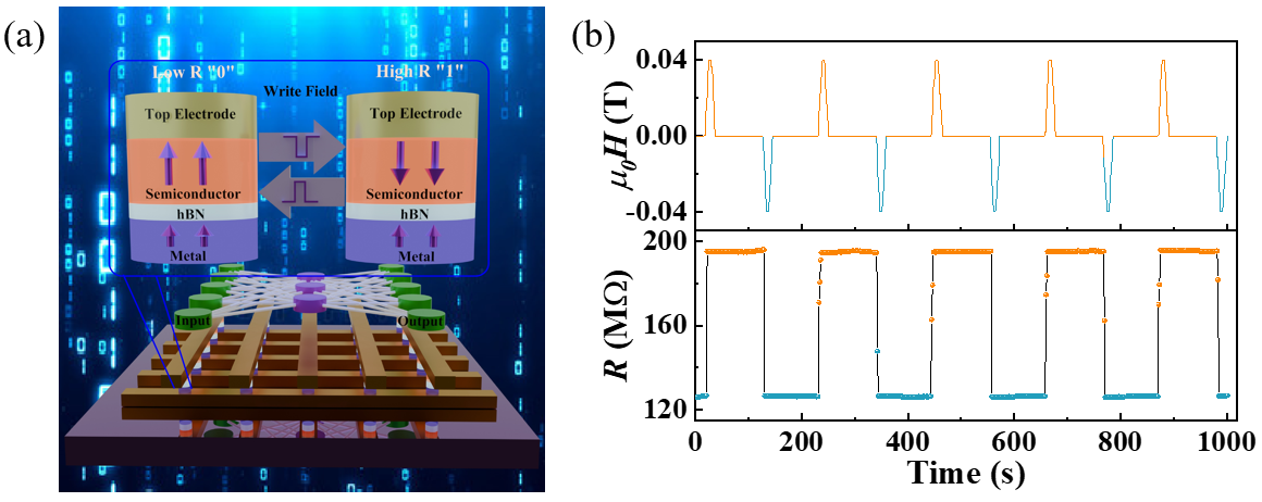 图4 (a)二维混合自旋过滤器示意图(b)非易失性磁电阻