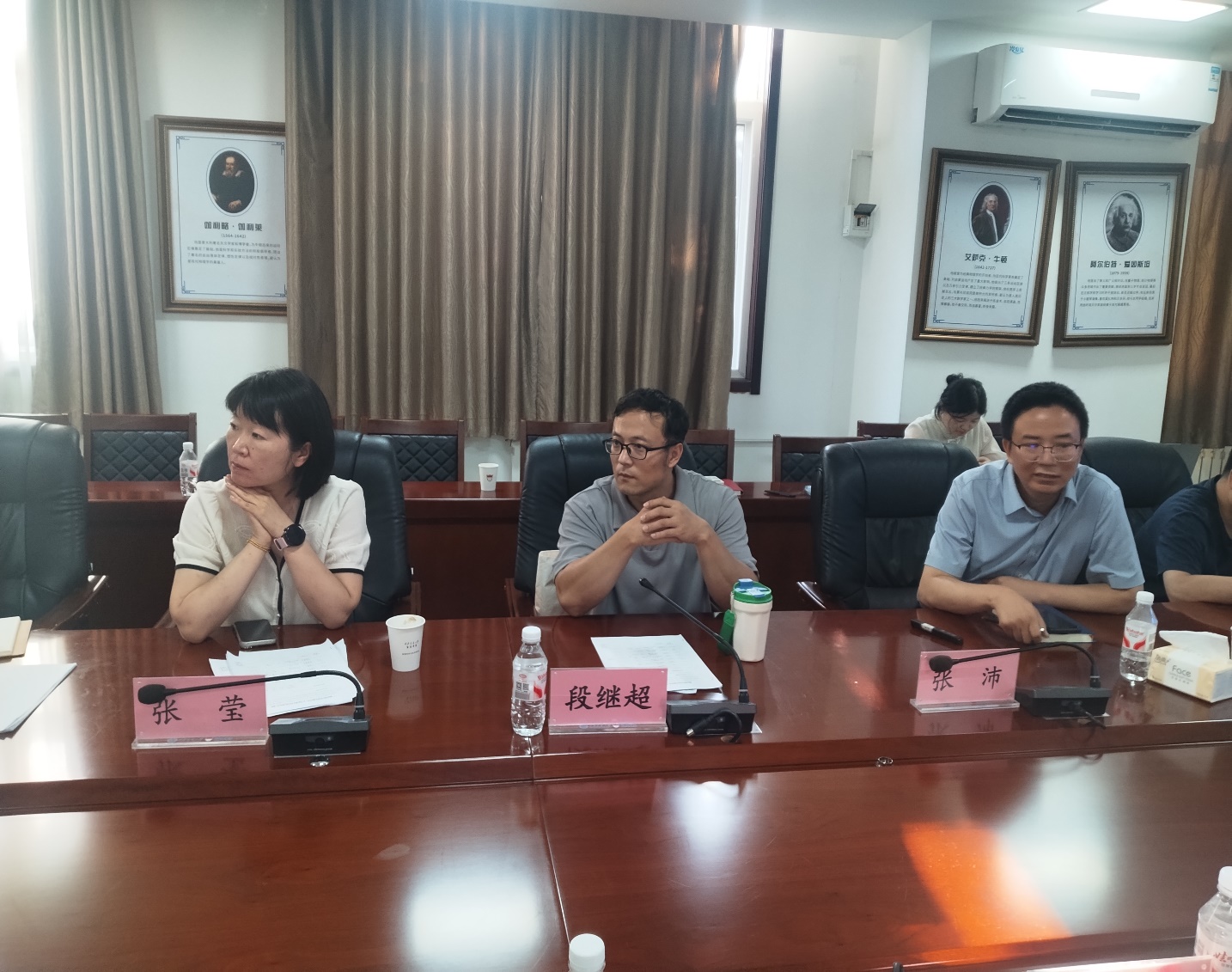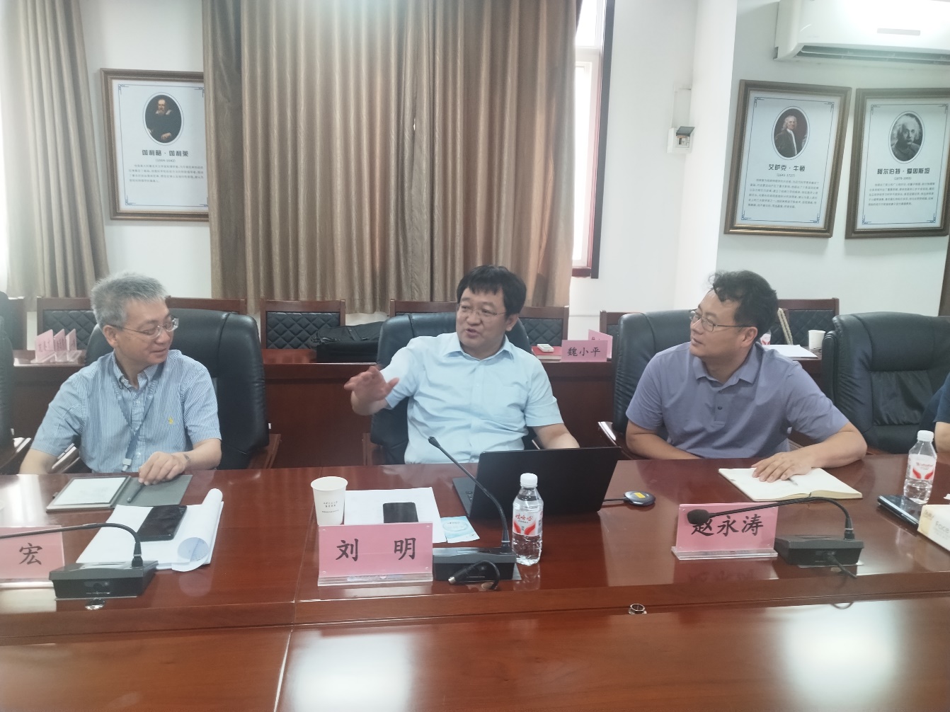 王一鸣全面介绍了学校本科教学工作,学院副院长李蓬勃主持会议。王处长从教学优良传统、传承发展、学生规模、招生工作以及教学基本安排等方面进行讲解,着重介绍学校教务处的基本架构、职责分工与业务工作流程。大家就大学物理课程教学、拔尖创新人才培养等工作进行深入交流。
