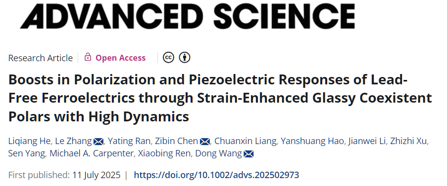 上述研究成果近期以《Boosts in Polarization and Piezoelectric Responses of Lead-Free Ferroelectrics through Strain-Enhanced Glassy Coexistent Polars with High Dynamics》为题,发表于国际权威期刊《Advanced Science》。伊莉影片