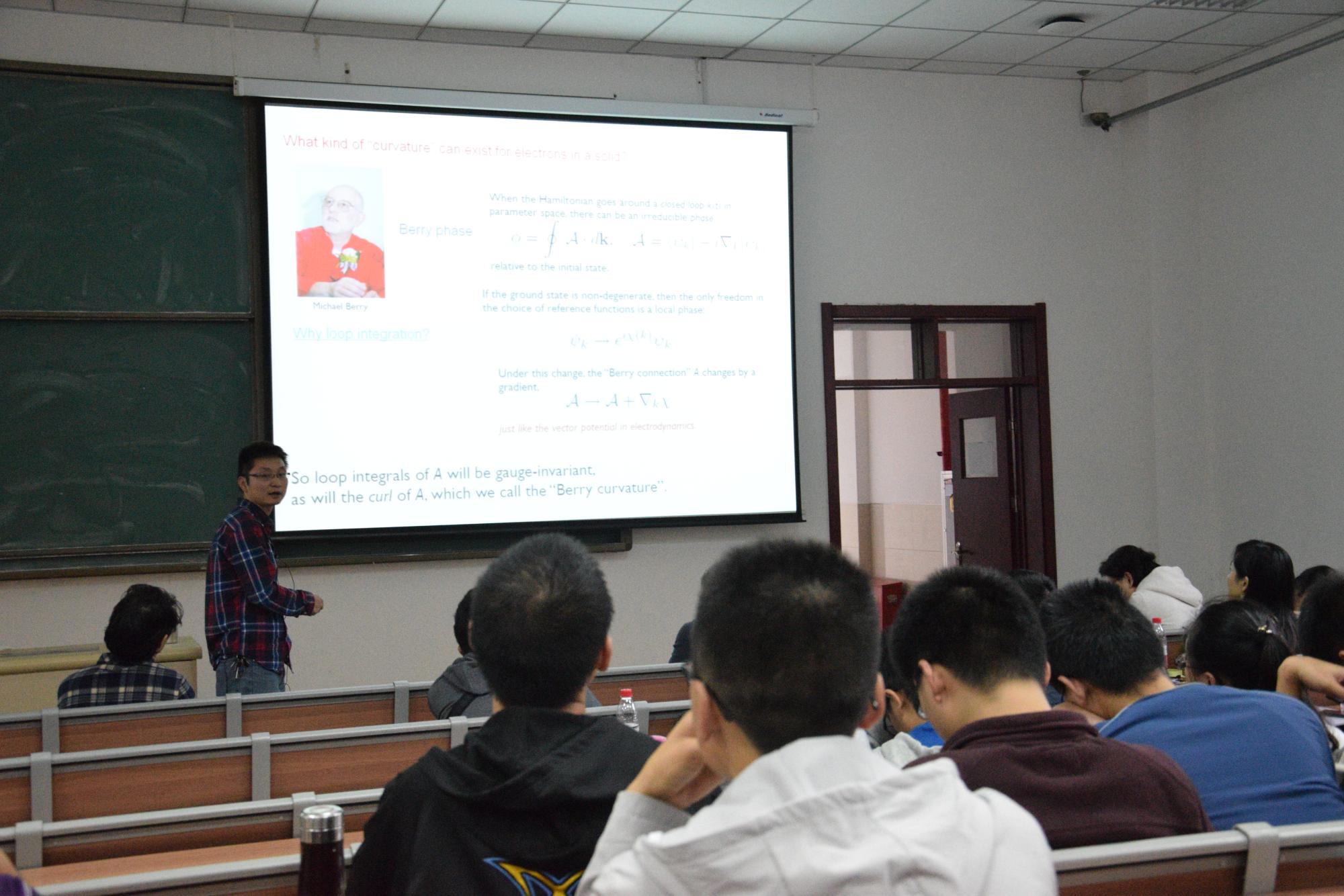 10月13日下去4:10,理学院物理学刘博老师与化学焦佼老师在中-3225室进行了一场题为“拓扑时代的来临—奇妙的拓扑相变和拓扑相”和“分子机器的诞生与发展”的学术报告,深刻解读诺奖的科学奥秘。理学院师生齐聚一堂,聆听报告,交流研讨。