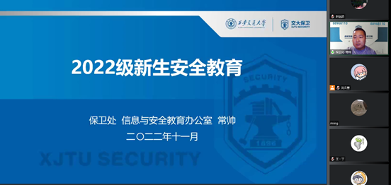 和数学学院在线上举行2022级新生安全教育讲座。本次讲座由保卫处信息与安全教育办公室常帅老师主讲,伊莉影片
